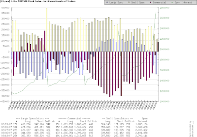 The latest Commitment of Traders report for the S&P 500 e-mini futures contract shows that small speculators (the dumb money) have gotten pretty darn bearish right as the commercials (the smart money) have gone net long for the first time in many months (thanks Software North):