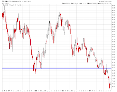 The monthly chart shows that this breakdown has taken the dollar to lows it has never seen before: