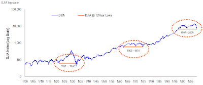 This next chart (HT, Barry) shows that this is only the third time in history stocks have made a new 12-year low. The last occurrence marked THE low of the epic 1973-74 bear market.