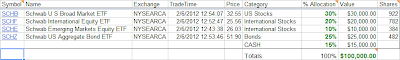 I expect your personalized portfolio to fall somewhere in the middle. I can’t build it for you; it’s up to you to design it yourself. After all, you have empowered yourself by becoming your own financial adviser. To help you get started I’ve built a very basic model portfolio of Schwab ETFs you can take a look at but this is in no way advice. It’s for illustration purposes only. You will need to decide how to build your portfolio to suit your personal needs and goals.