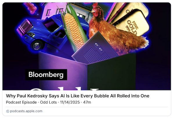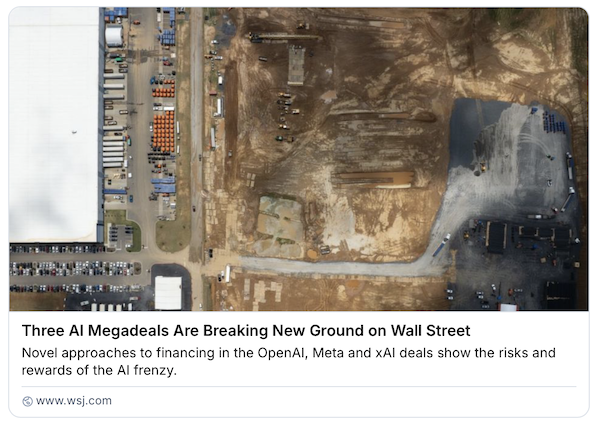 Moreover, meeting the exponentially growing capital needs of the companies working to build out the datacenters at the heart of the AI boom is increasingly becoming an exercise in creative accounting. As The Wall Street Journal reports, “The Hyperion deal is a Frankenstein financing that combines elements of private-equity, project finance and investment-grade bonds. Meta needed such financial wizardry because it already issued a $30B bond in October that roughly doubled its debt load overnight.”