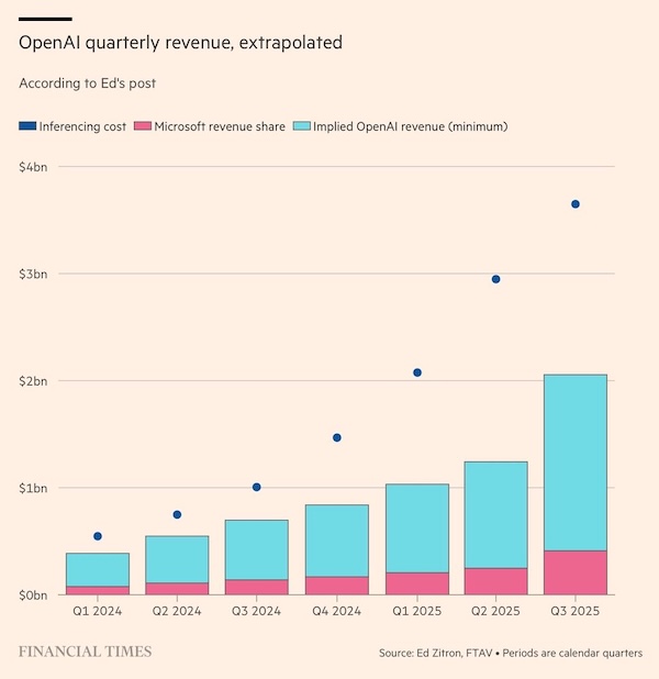And those losses at OpenAI that helping to bolster the profits of Big Tech may, in fact, understate the true nature of the problem. “The apparent gap between revenues and running costs is a lot more than has been reported previously. If the data is accurate, then it would call into question the business model of OpenAI and nearly every other general-purpose LLM vendor,” reports The Financial Times.