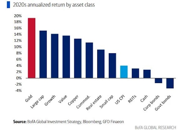 Markets are already sending a fairly clear message in regard to these shifting macro dynamics. As Callum Thomas writes, “Gold is the best performing asset during the 2020’s so far… (and bonds are the worst). How will the rest of the decade go?”