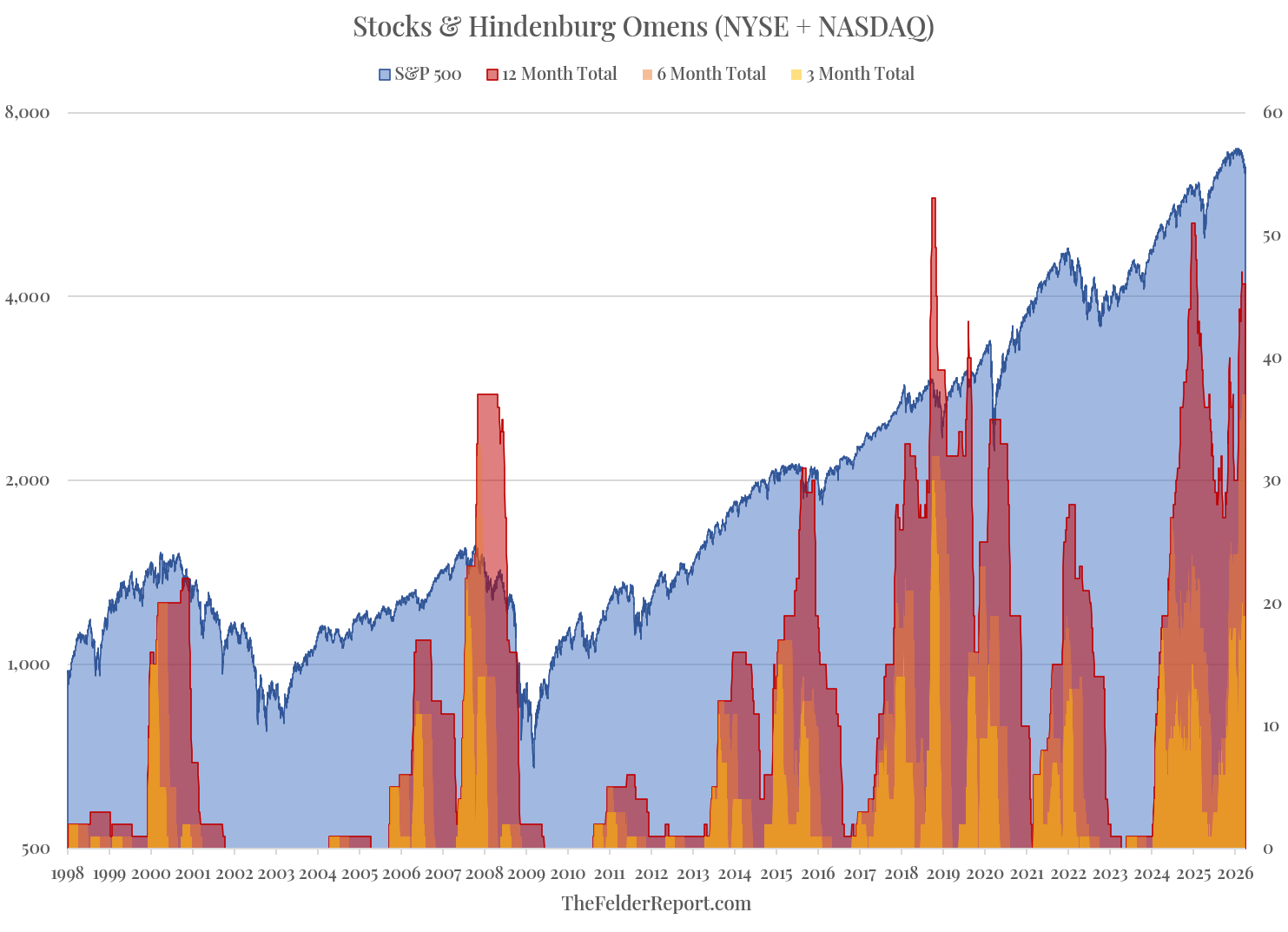 The Hindenburg Omen, first developed by Jim Miekka, signals a significant deterioration of stock market breadth while it remains at or near new highs. While it is not terribly effective at predicting stock market crashes, as originally designed to do, multiple omens triggered over a period of time can signal a bull market vulnerable to a reversal.
